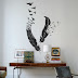 L'habitació és estreta, així que per do distorsionar visualment la mida de la mateixa, vaig pensar que uns topets amb un color més fosc que la paret quedarien bé. Els topets no segueixen un ordre, estan flotant en l'espai, de manera que acompanyen els núvols flotant de la paret d'enfront.